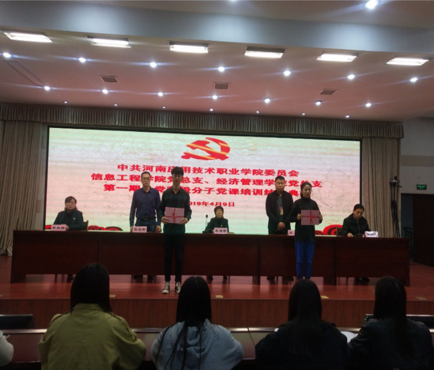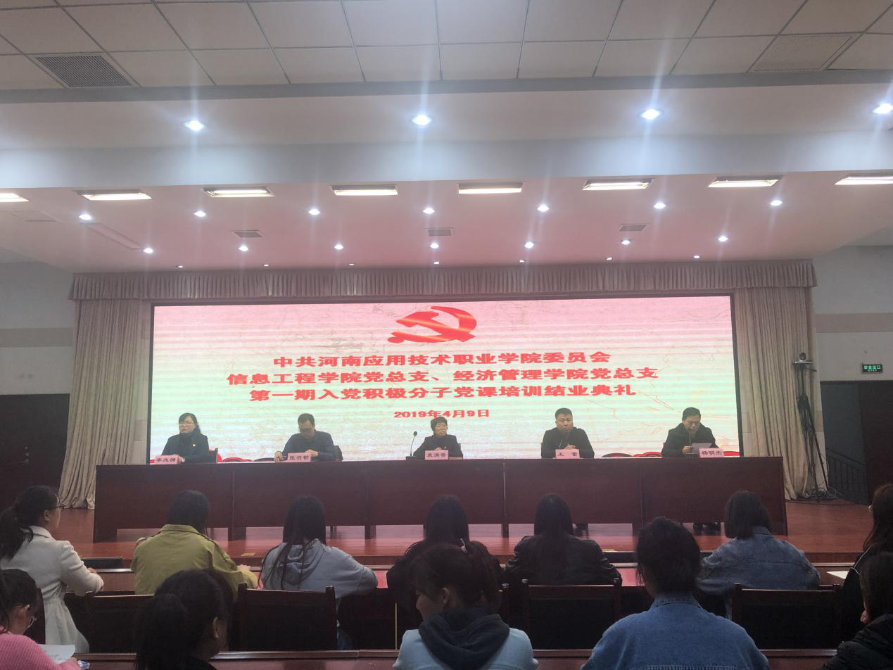 为引导入党积极分子严格以党员的标准要求自己,并坚定自我理想信念,不忘入党初心,继续前行。2019年4月9日14点,leyu乐鱼官方网站党总支联合经济管理学院党总支在实训楼二楼会议室开展了入党积极分子培训结业典礼。本次结业典礼由经济管理学院党总支书记袁清香老师、leyu乐鱼官方网站院长王雷老师、经济管理学院院长张召哲老师、leyu乐鱼官方网站党总支副书记杨明杰老师、经济管理学院党总支副书记李兆楠老师及全体顺利结业的120名入党积极分子参加。