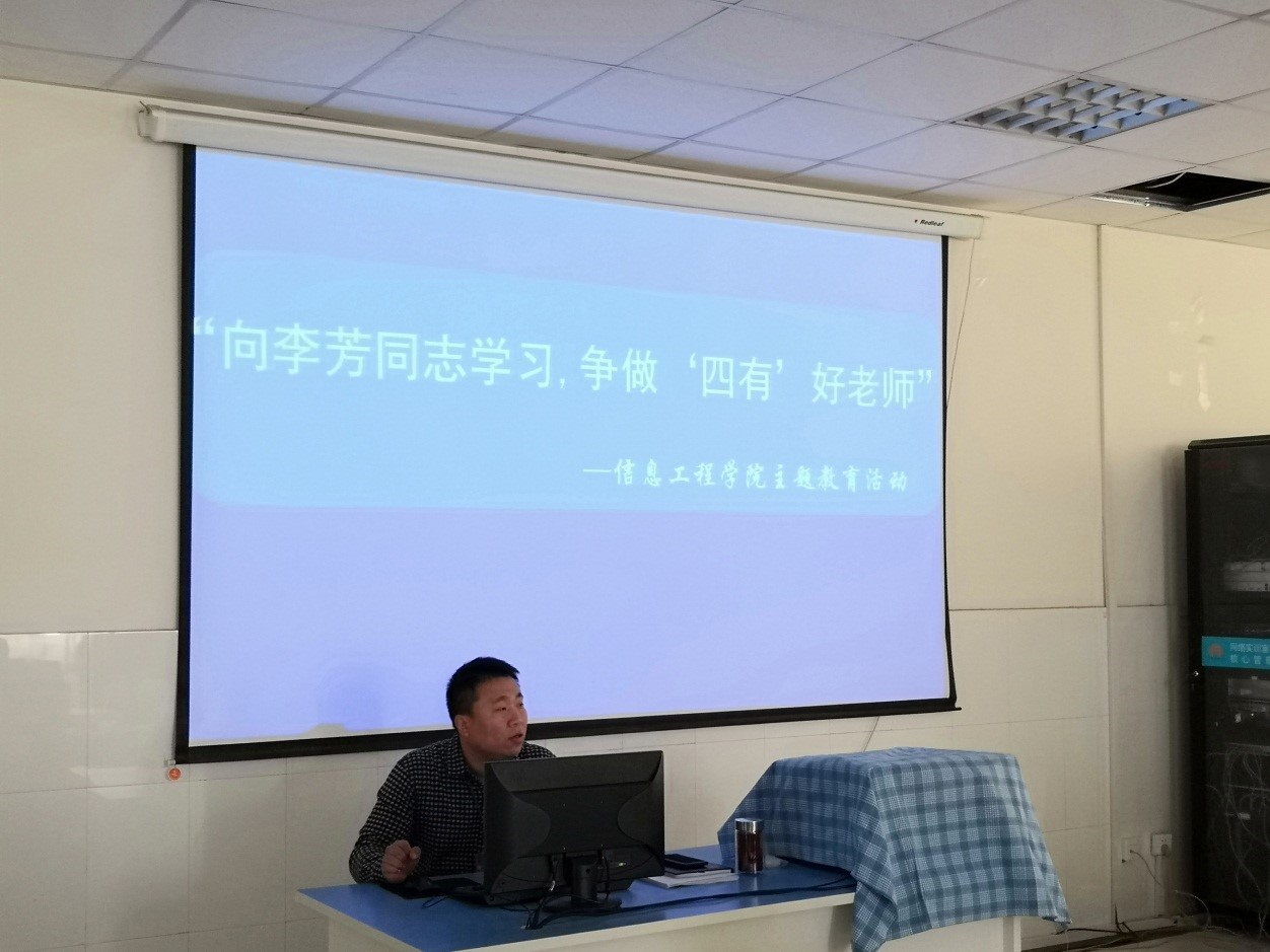 一、传达河南省高校工委、河南省教育厅党组关于开展“向李芳同志学习,争做“四有”好老师”主题教育活动的通知。