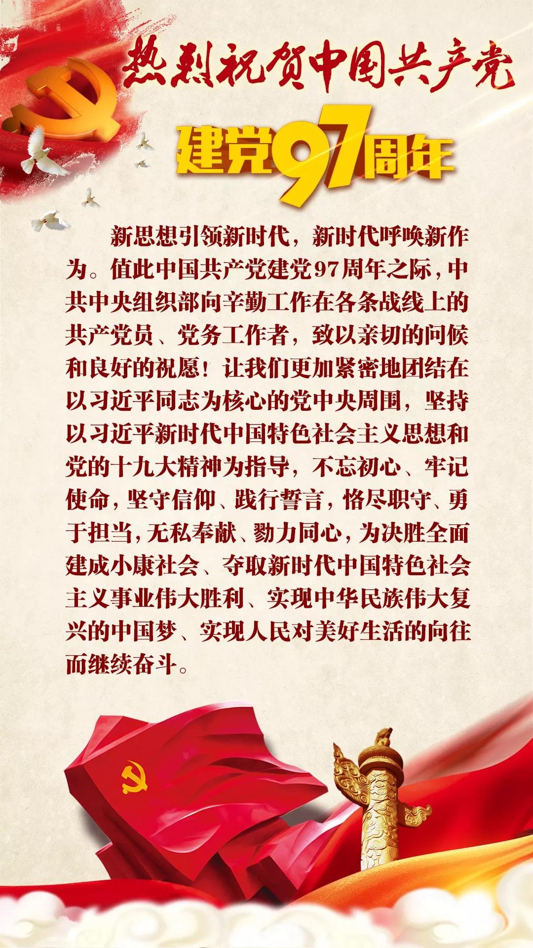 中央组织部向全国共产党员和党务工作者致以节日祝贺
