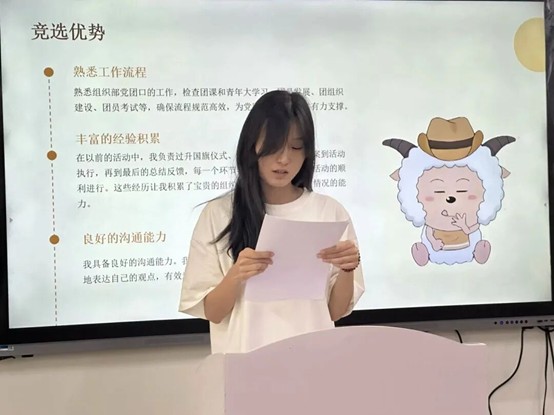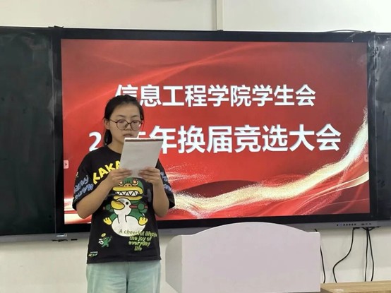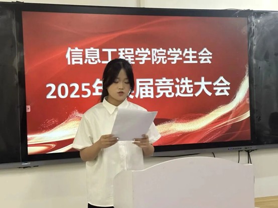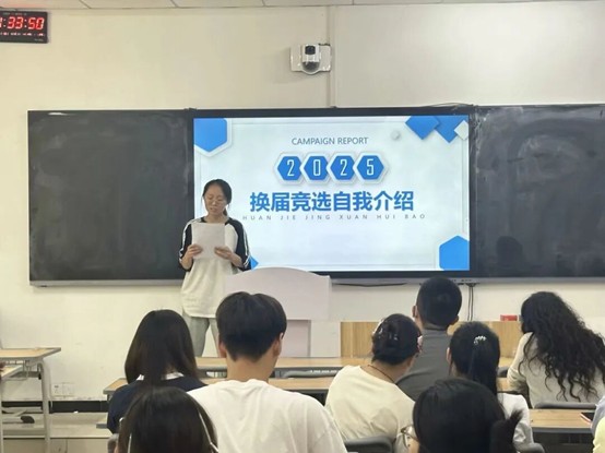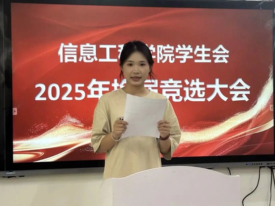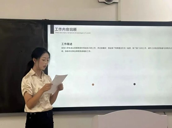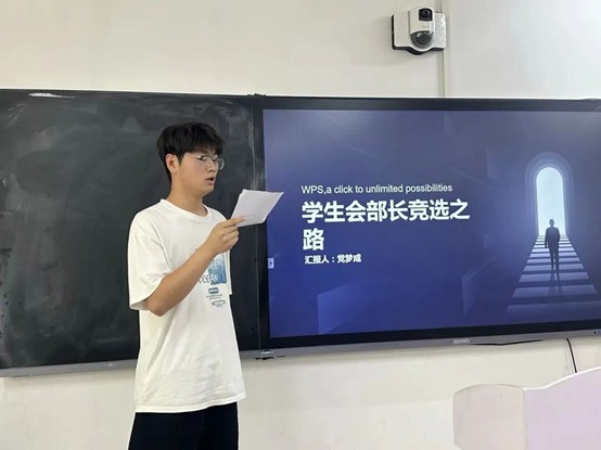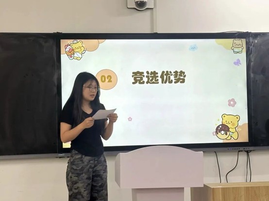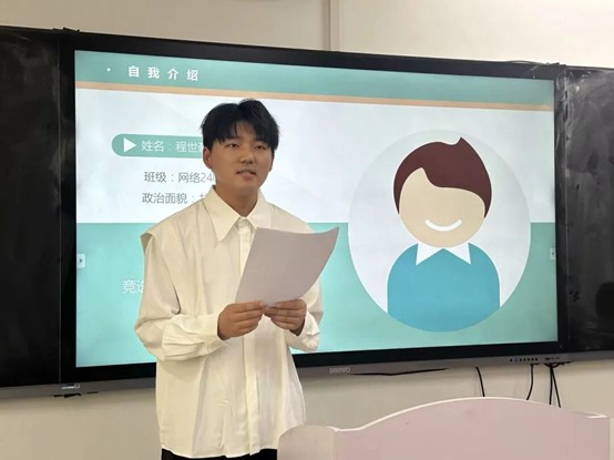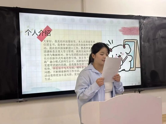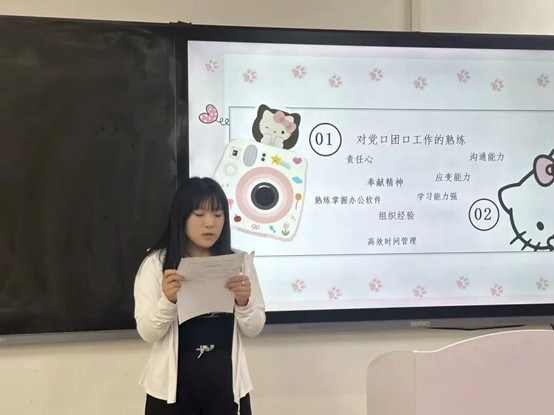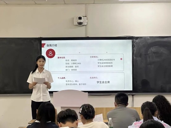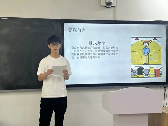 随后,参与竞选的同学们依次上台发表竞选演讲。他们自信满满,结合自身优势,阐述了对竞选岗位的理解和工作规划,表达了为学院和同学们服务的决心。