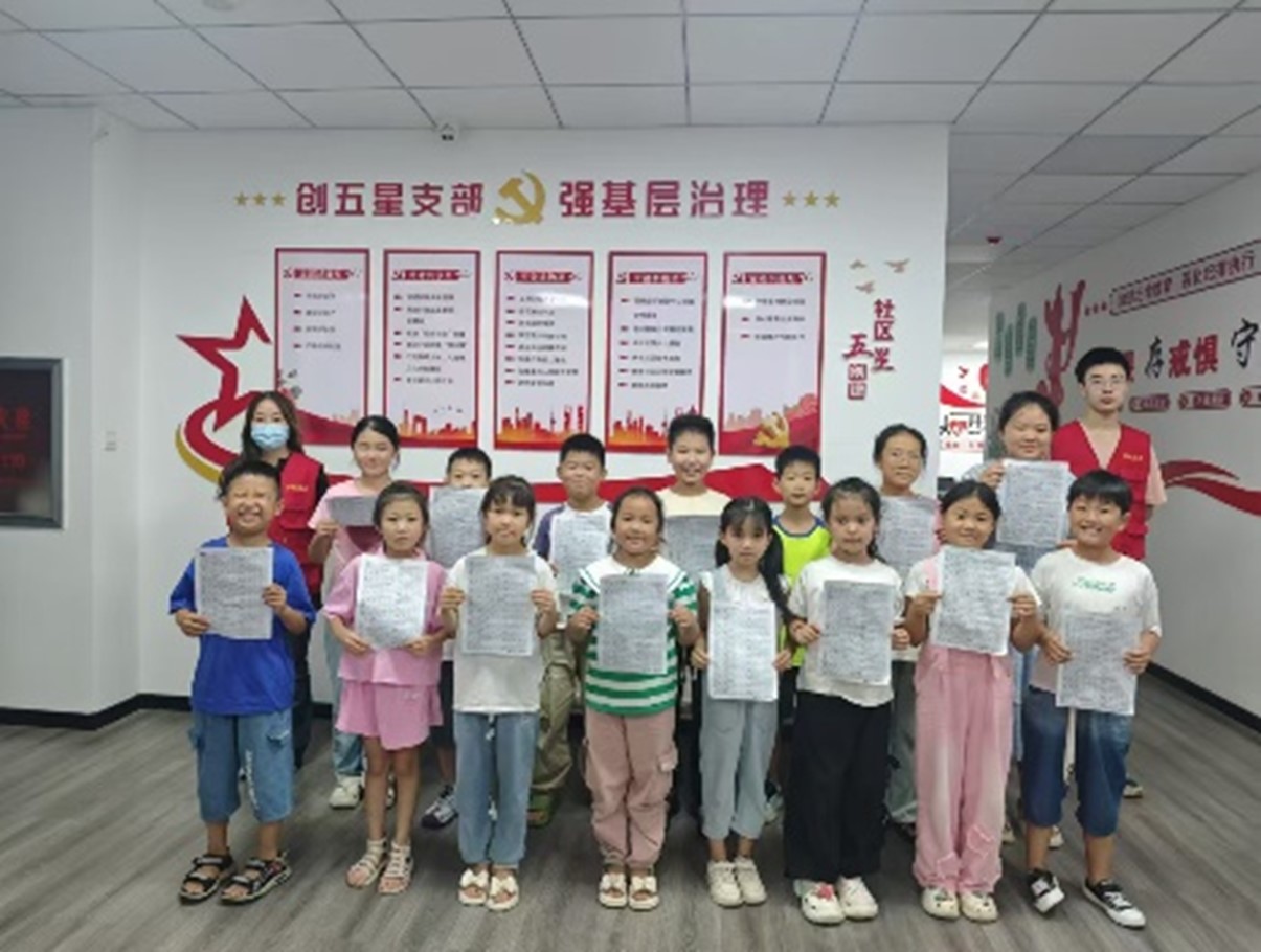 2024年7月8日,网络2303班郭彤彤同学来到了郑州市京广路街道擎社区,她化身成全能老师,在每个周一到周四的时间里,给孩子们辅导作业,还会在孩子们的作业写完之后,同其他志愿者带孩子们在户外玩耍。坚持劳逸结合,在确保孩子们安全的情况下,还组织了一场“行走的思政课”,在团队的带领下,孩子们体验了无人驾驶技术、参加了儿童搏击公益课堂、还徒步参观了南水北调生态文化公园,他们用实际行动树立孩子们保护环境、爱护地球的责任观念,使其从小树立起对资源环境的忧患意识,养成节约资源、爱护环境的良好习惯和绿色低碳生活理念。