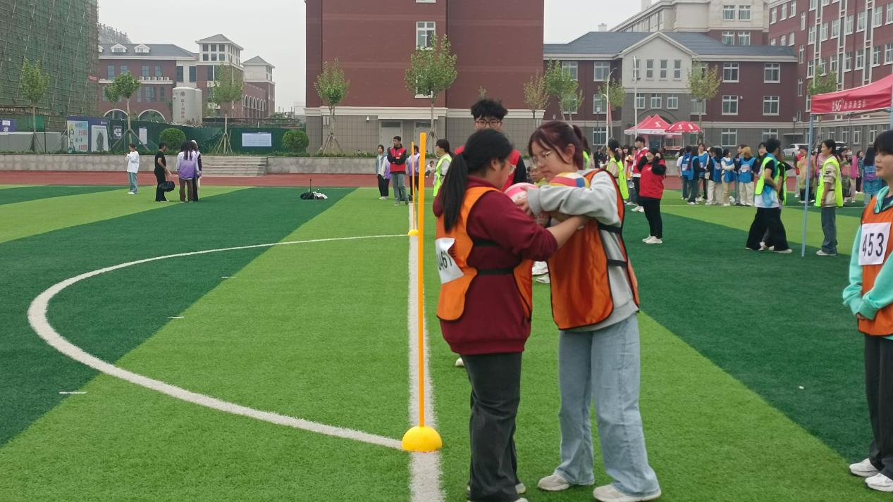 解锁团队默契,一起燃情团建。大型的竞技比赛中,自然也缺少不了趣味性的游戏,操场上一片欢乐--接力运球、汉诺塔接力、能量传输等趣味性比赛嗨翻全场。运动员们配合默契的打了一场又一场的精彩,我院教职工们倾情助力,将氛围顶置高潮!