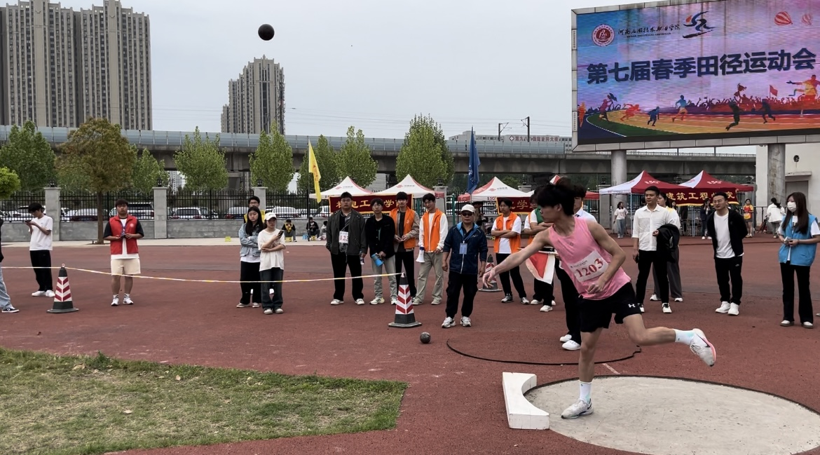 在铅球的赛场上,运动员们寻找力量的极限,让铅球飞向远方,他们用全身的协调迸发出巨大的力量,抛出青春的抛物线。