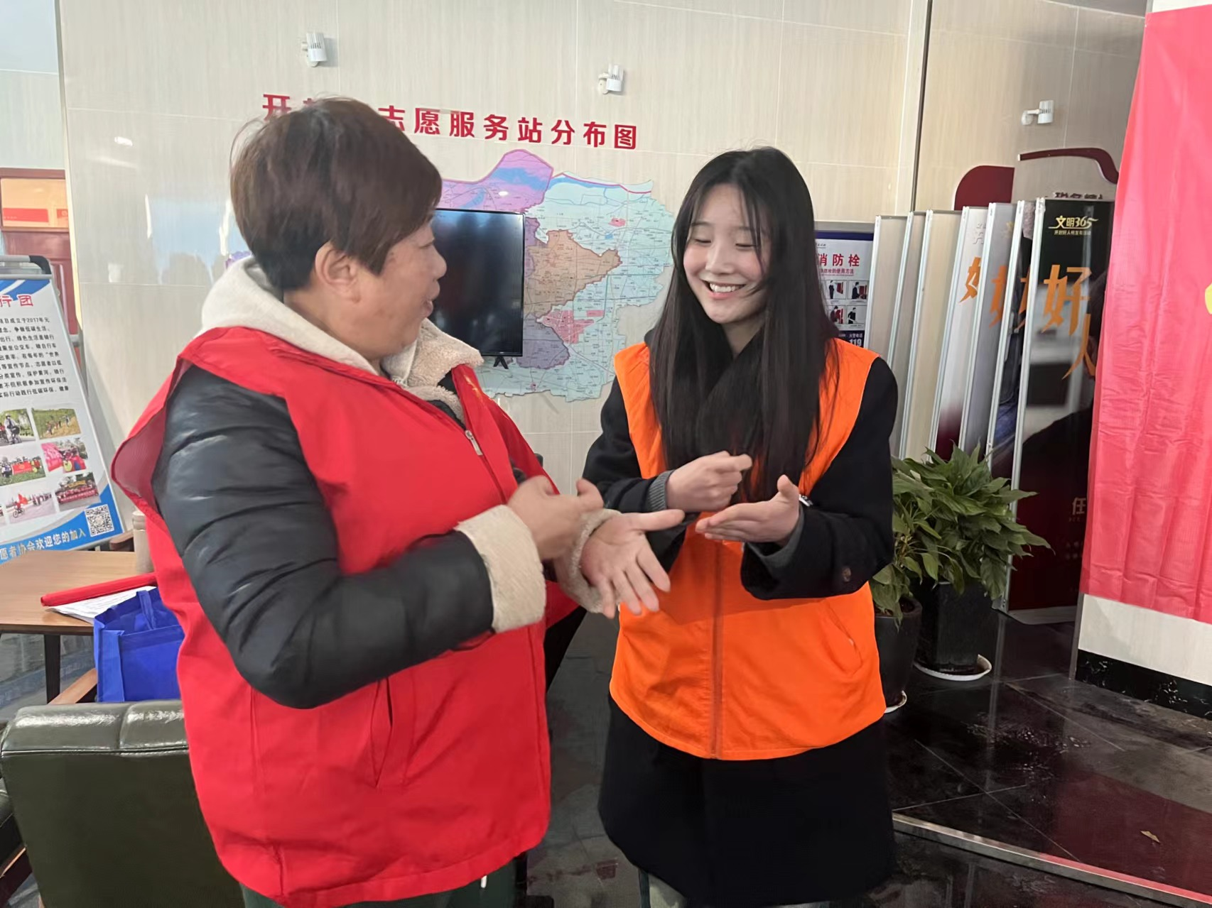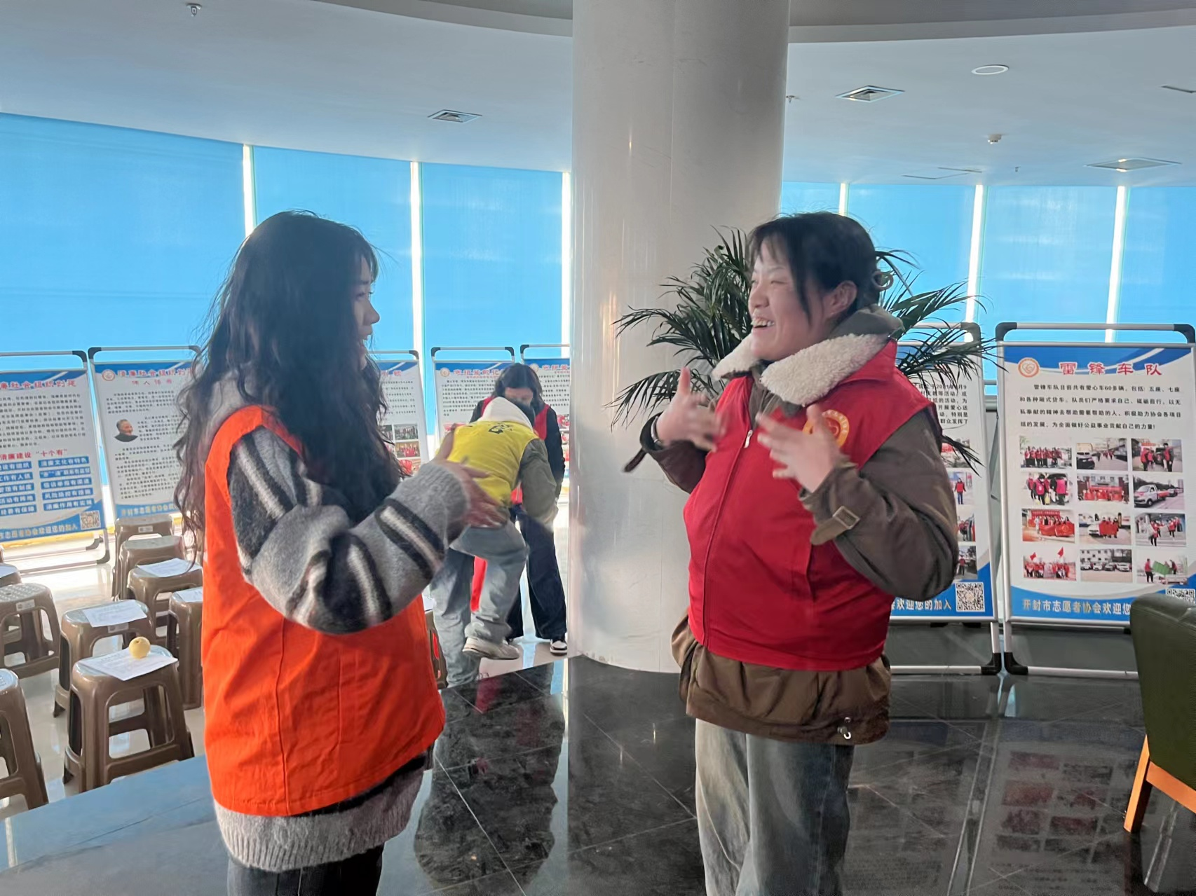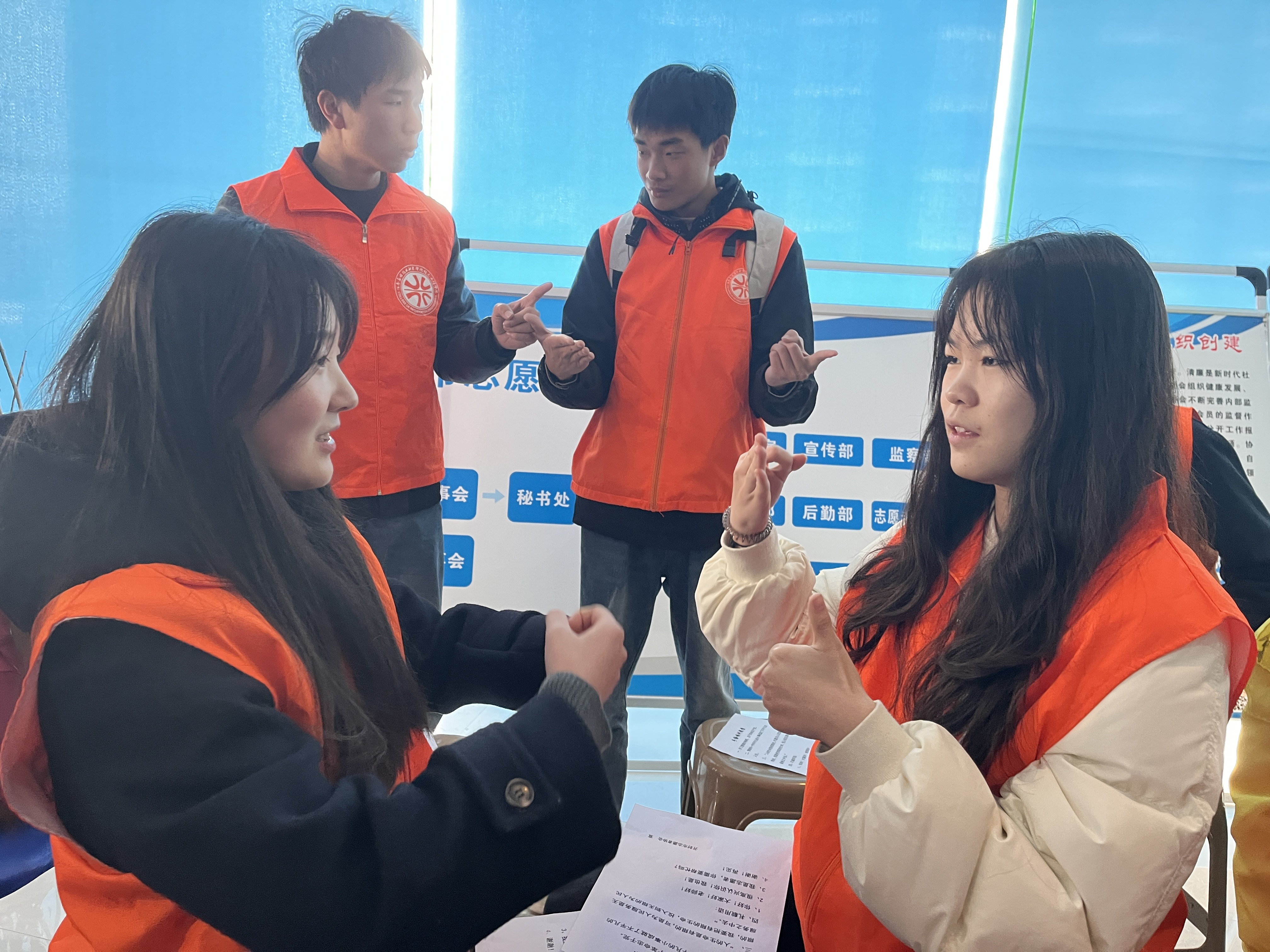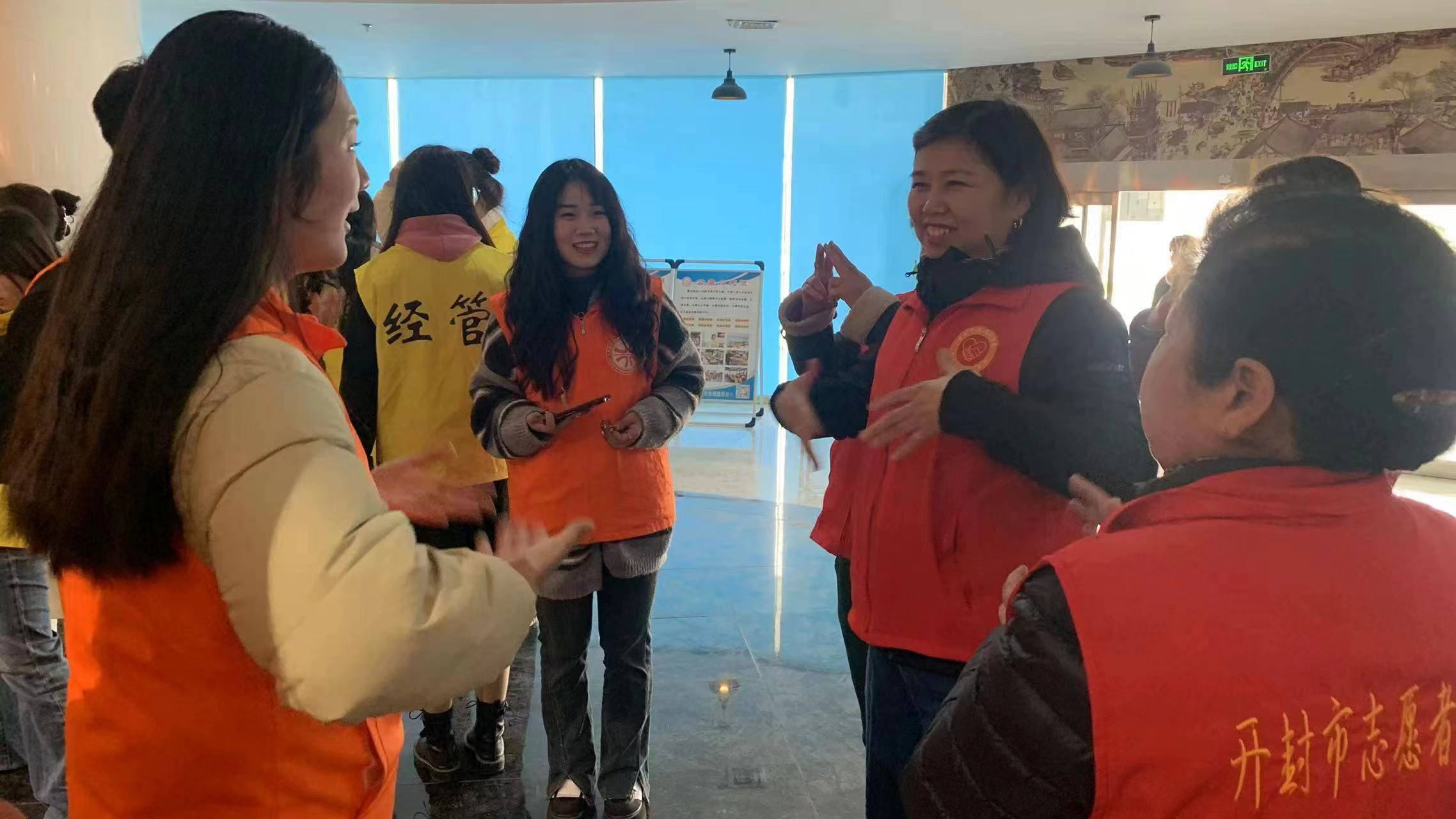 培训结束后,大家趣味使然,灵活运用在课程中所学“语言”与在场聋人积极互动,热情展示。在此刻,他们心怀温情,用无声的手语表达着有声的感情,火热的心相互碰撞,激烈的火花迅速点燃......