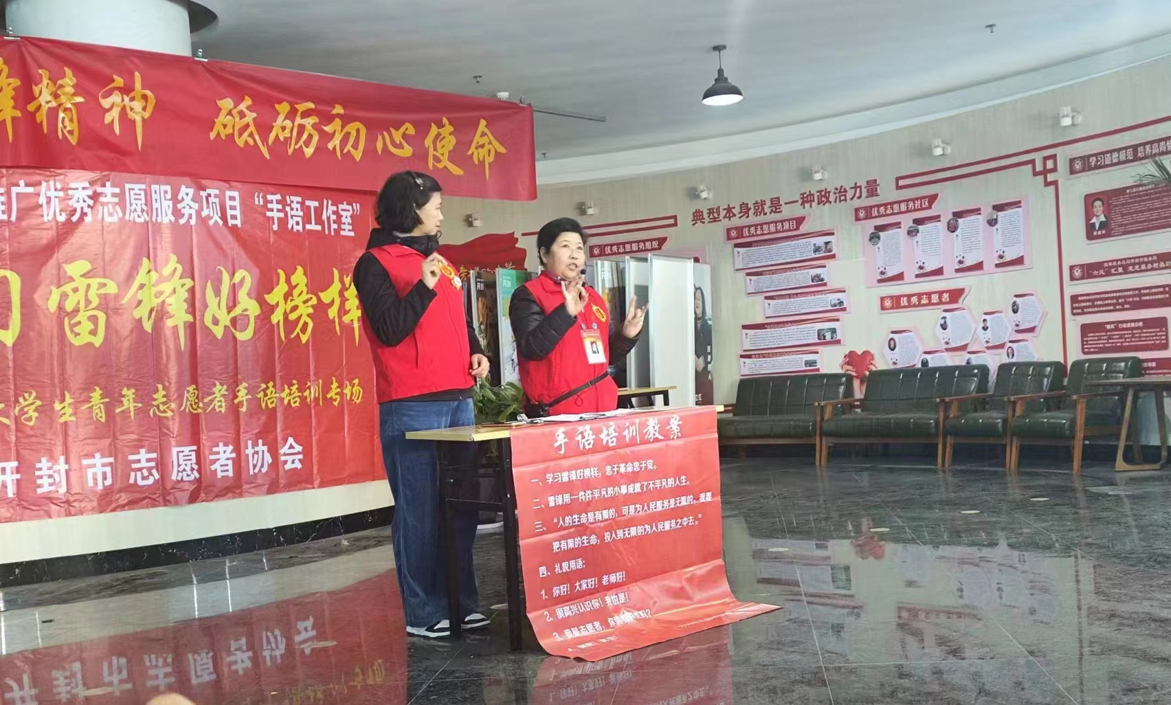 为培育践行社会主义核心价值观,丰富我院志愿服务内容,在纪念“向雷锋同志学习”六十一周年纪念日之际,2024年3月10日,leyu乐鱼官方网站组织师生参加了开封市志愿者协会手语工作室举办的“学习雷锋好榜样”大学生青年志愿者手语培训课程。本期培训班由开封市志愿者协会手语工作室负责人曹玉芬老师和鲍冰老师执教。leyu乐鱼官方网站团总支书记冷月及11名学生会代表参加会议。