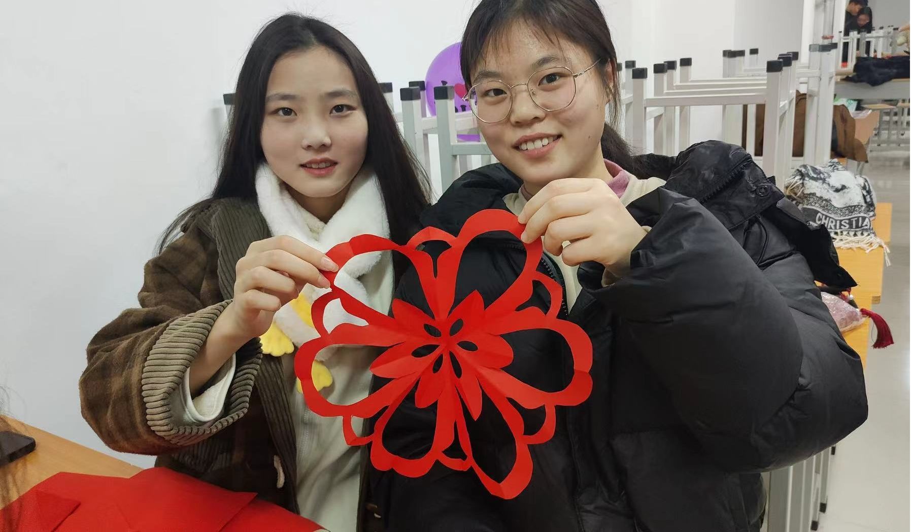 活动现场同学们想象力放飞,纷纷挥动着剪刀,嗖嗖嗖地剪出一个又一个惊艳的窗花!他们在窗花上加入自己的创意元素,寄托对新年美好的期盼。