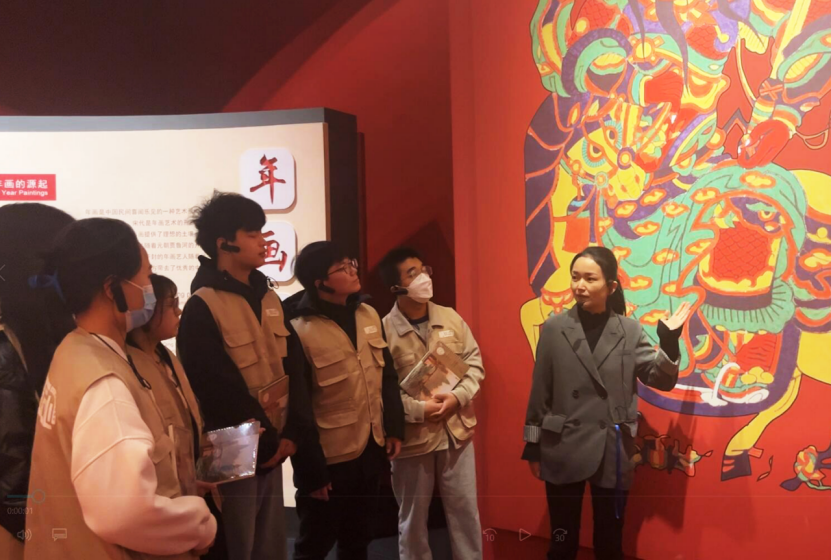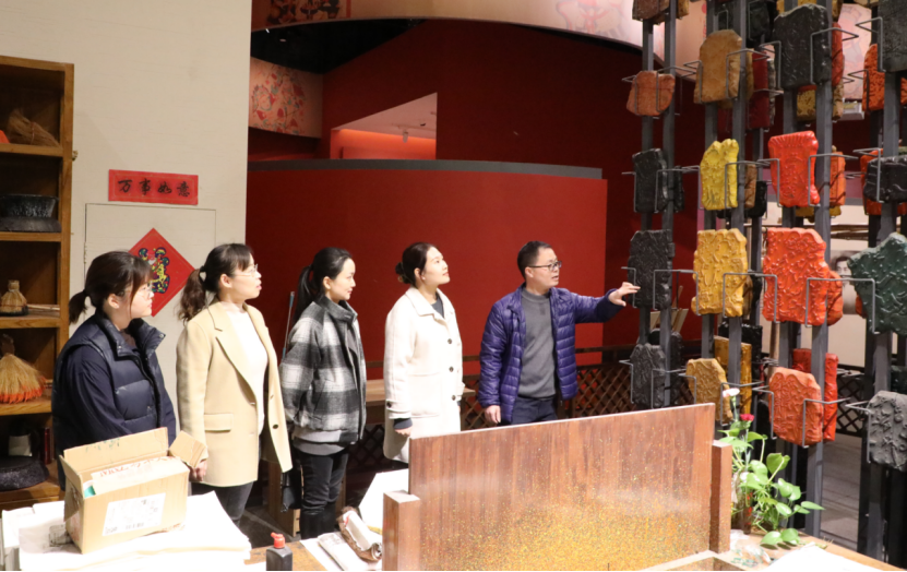 国家非物质遗产——朱仙镇年画传承人蔡瑞勇主任、详细介绍了朱仙镇年画的历史、制作工艺、艺术特征级创新发展方向,参观师生受益匪浅。