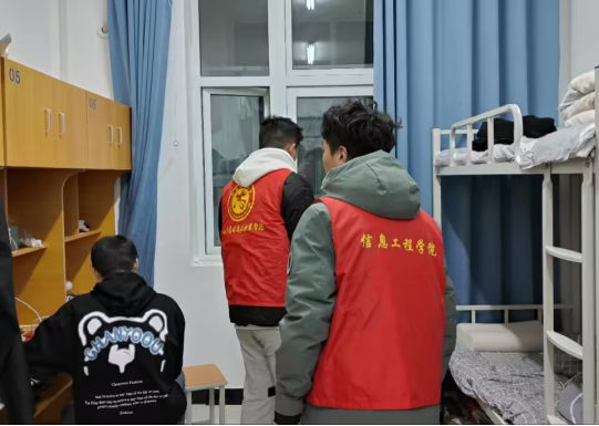 此外检查人员也着重提醒同学们要校园宿舍规范,提高安全防范意识,做好个人防护,保持宿舍环境卫生,养成良好的生活作息习惯,以健康的体魄、饱满的精神状态来完成新学期各项学业工作任务。