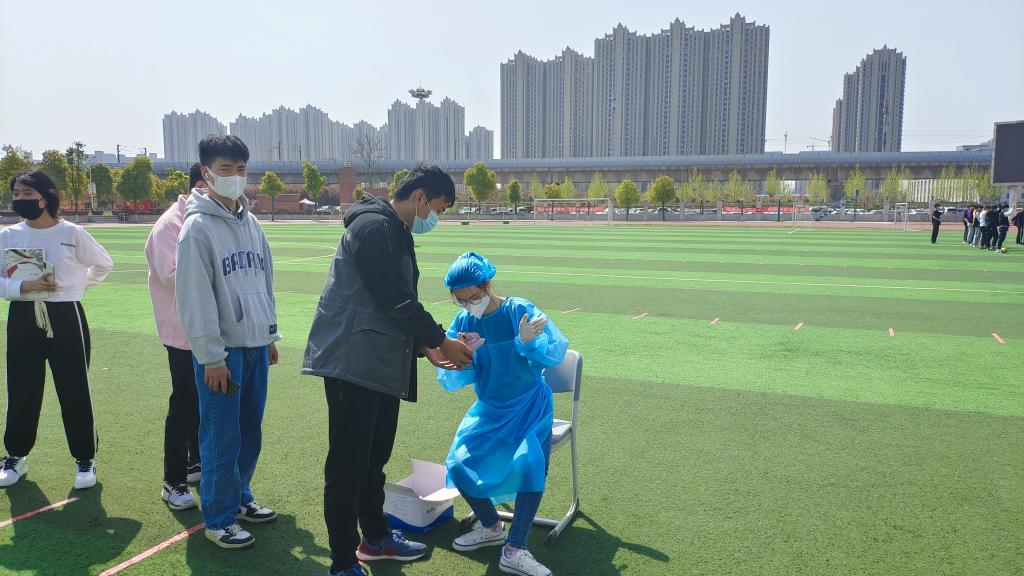 本次全员核酸抽检,现场志愿者分工明确,通力配合,耐心引导受检师生按照核酸检测要求配合完成每项流程,使得检测工作高效平稳有序开展。采样现场,同学们按要求戴好口罩,有序排队等候,分时段、分批次前往采样点进行检测,配合完成测温、扫码、登记、采样等相关流程。