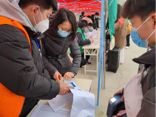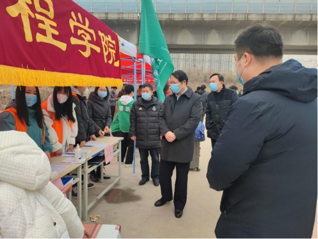 2月19日清晨,leyu乐鱼官方网站志愿者们迅速在岗位集结完毕,等待我院返校学生的到来。校院领导也对本次报到工作十分关心,亲临现场指导工作,与大家亲切交流并叮嘱大家做好工作的同时要注意个人保暖、防护。