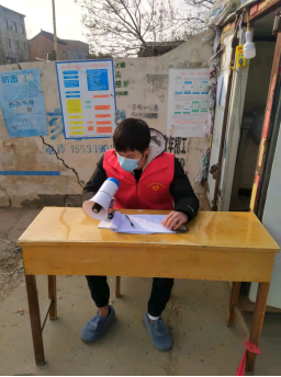 河南应用技术职业学院leyu乐鱼官方网站网络2103班宋寒冰同学,在放假几天后听闻疫情日趋严重,主动配合村干部实施疫情防控措施,在村口设立的卡点处和其他志愿者一起进行轮流值班,守护好村里的防线。同时对每位外来人员进行检查和外来物品的消杀工作,并督促返乡人员进行居家隔离。宁可十防九空,不可失防万一。