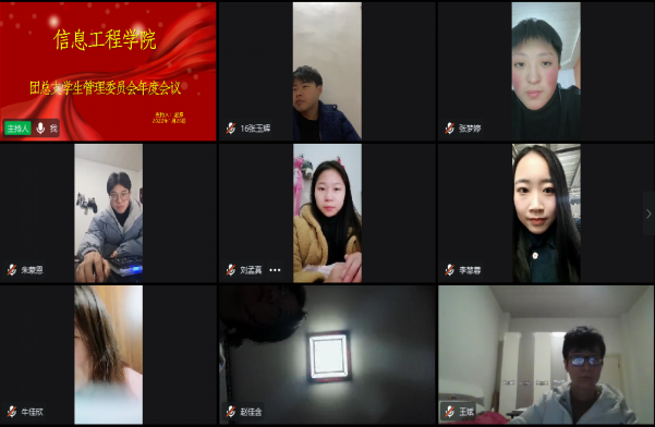 本次会议共分为四个部分:工作内容概述、工作问题、经验总结、2022工作展望,由团总支书记赵源主持召开,学生会各部门干部参与其中。
