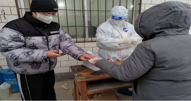 河南应用技术职业学院leyu乐鱼官方网站网络2001班的李慧蓉同学,于2022年1月9日投身到当地的疫情防控工作当中,在当地组织的核酸检测工作中,帮助医护人员维持现场秩序,保证核酸工作可以快速顺利的进行,同时帮助老人以及儿童进行扫码以及记录的工作。响应党的号召,与疫情抗争到底。