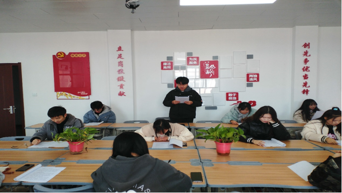 为不断提高对学生会干部的规范、科学管理力度,完善学生会干事管理制度,进一步做好我院学生会工作全面总结,推进学生会深化改革成果落地成效, 2021年12月18日中午1时,leyu乐鱼官方网站在党员活动室进行2021—2022年度团总支学生会第一次述职评议工作会议。本次述职评议工作会议由leyu乐鱼官方网站团总支书记赵源支持召开,学生会全体干部参与其中。