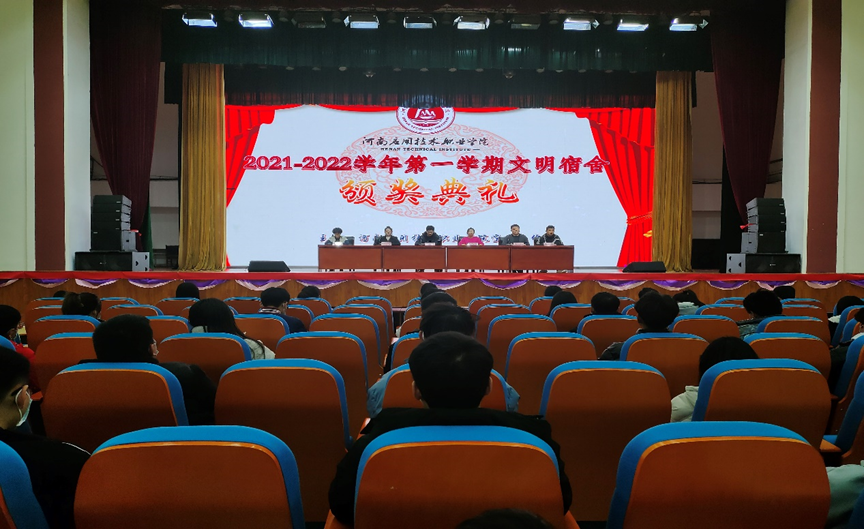 为督促学生养成良好的生活习惯,创造卫生、文明、整洁的宿舍生活环境,积极推进宿舍管理的规范化,提高leyu乐鱼官网学子的文明素质,2021年12月9日,信息工程学在大礼堂参加leyu乐鱼官网2021-2022学年第一学期文明宿舍颁奖典礼。
