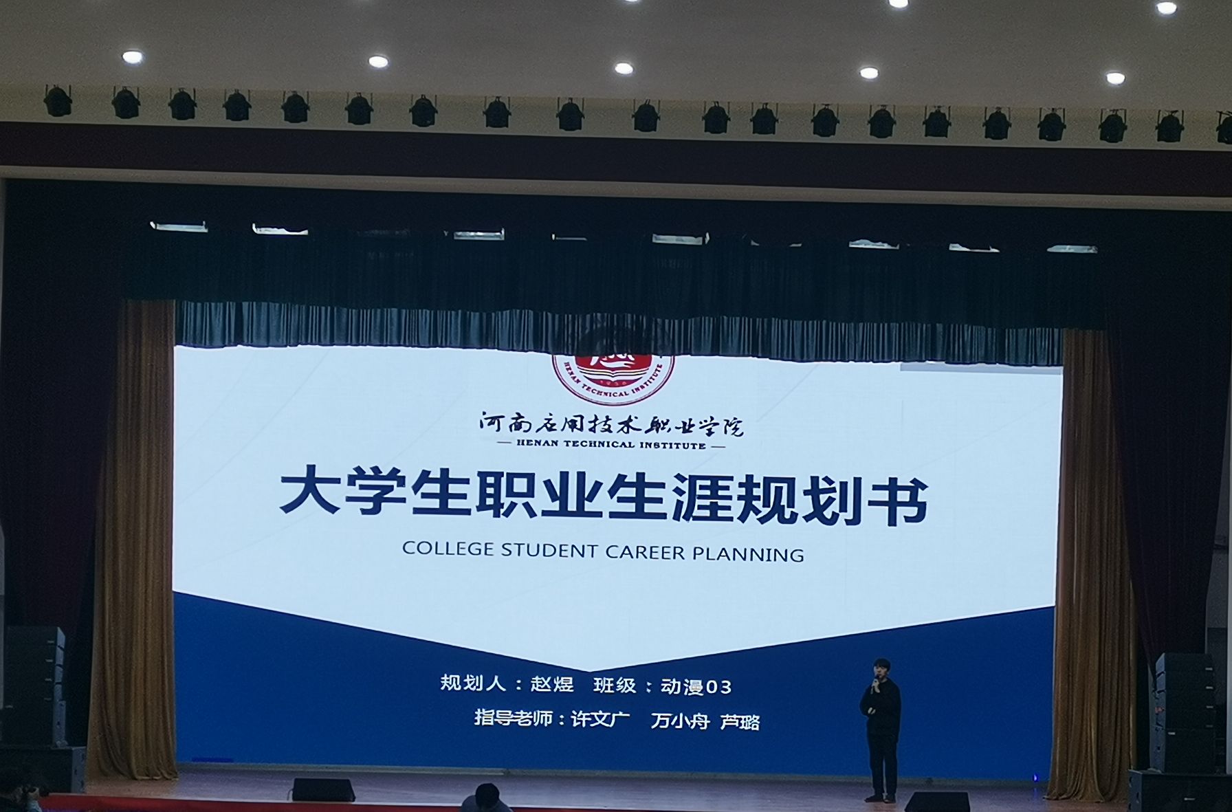 leyu乐鱼官方网站经过前期层层筛选,最终朱海博、赵煜两名同学脱颖而出,代表我院站到了职业生涯规划大赛决赛的舞台。为确保比赛圆满顺利,两位选手在我院领导、老师的协助下进行备赛工作,认真准备PPT、演讲稿、情景剧的排练,对比赛做了万全的准备。