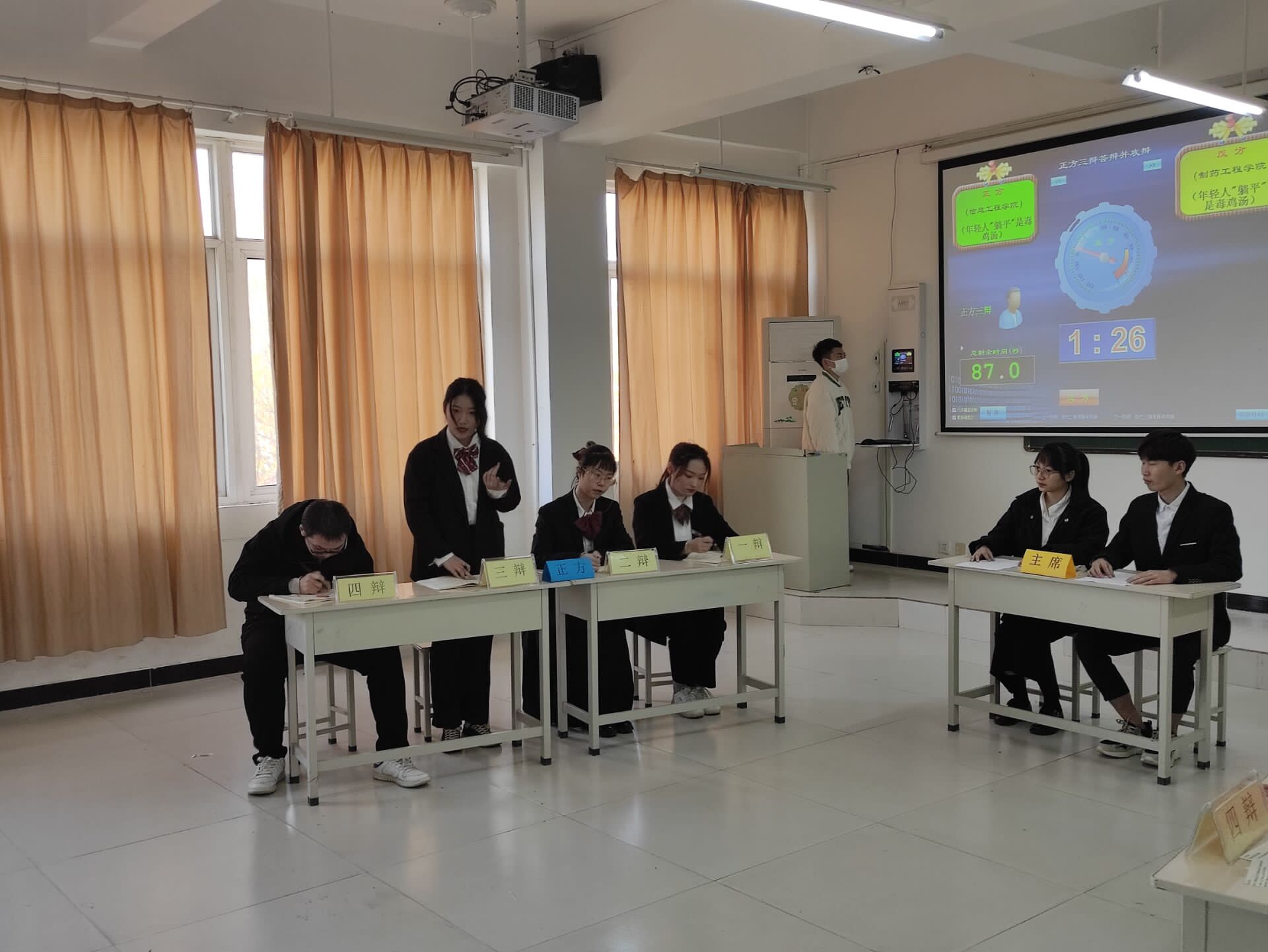 东校区辩论赛代表队于当日中午12点半在教学楼203教室与制药工程学院进行此次辩论赛决赛的比拼。本次辩论赛的主题是“年轻人躺平是不是毒鸡汤”,正方代表是来自leyu乐鱼官方网站的靖婉秋,余启航,许锋云,裴俊骁