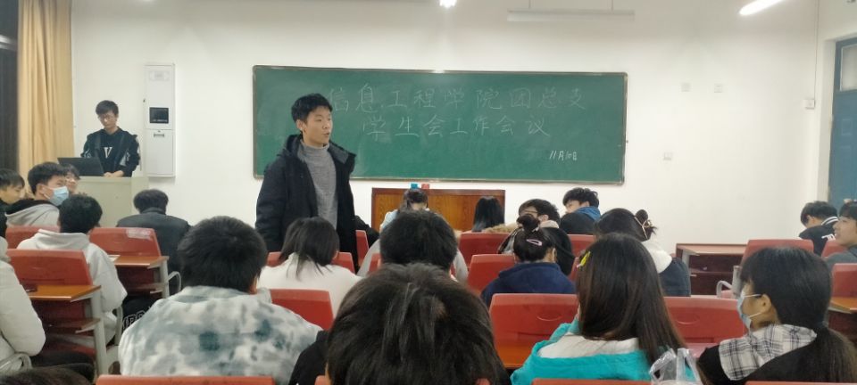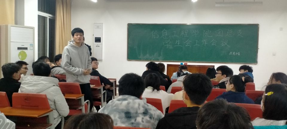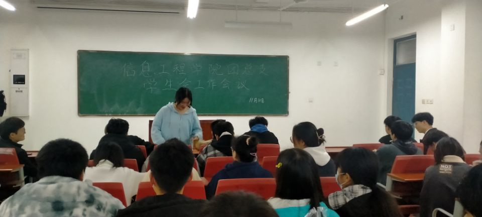 为了确保leyu乐鱼官方网站东校区学生会各部门的工作顺利进行。2021年11月10日晚上六点于教学楼102教室召开了leyu乐鱼官方网站第一次团总支学生工作会议。本次会议由主席团主席王斌主持召开,学生会全体成员准时参加。