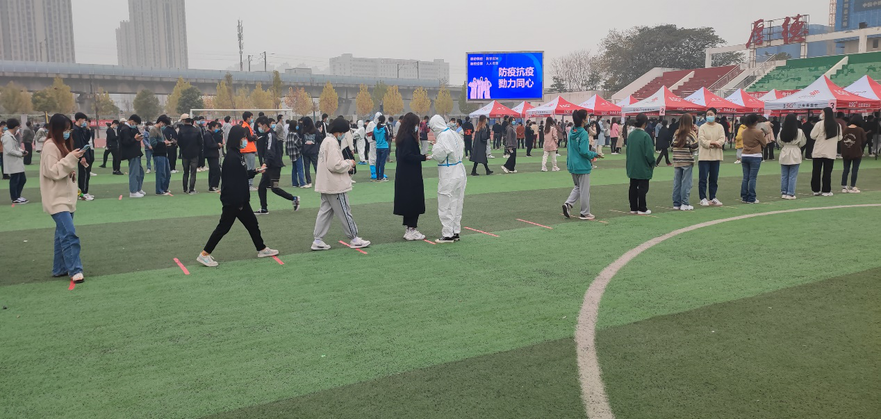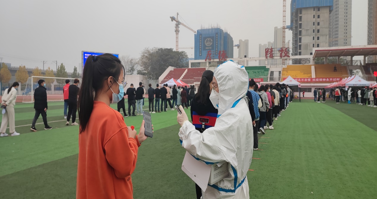采集现场,为避免造成人员排队扎堆现象分别在操场设立了多个核酸检测站点,各班成员在学生会成员的带领下有序进入检测站点,整个检测工作要求参检人员全程佩戴口罩,保持一米间距,拿着自己的核酸检测预约码排队等待,同学们也都积极服从安排、听从指挥、全力配合医护人员的采样工作。最后在医护人员和leyu乐鱼官方网站学生会干部的辛勤付出下核酸检测工作顺利结束,感谢他们用行动守护了信工学子的健康安全。