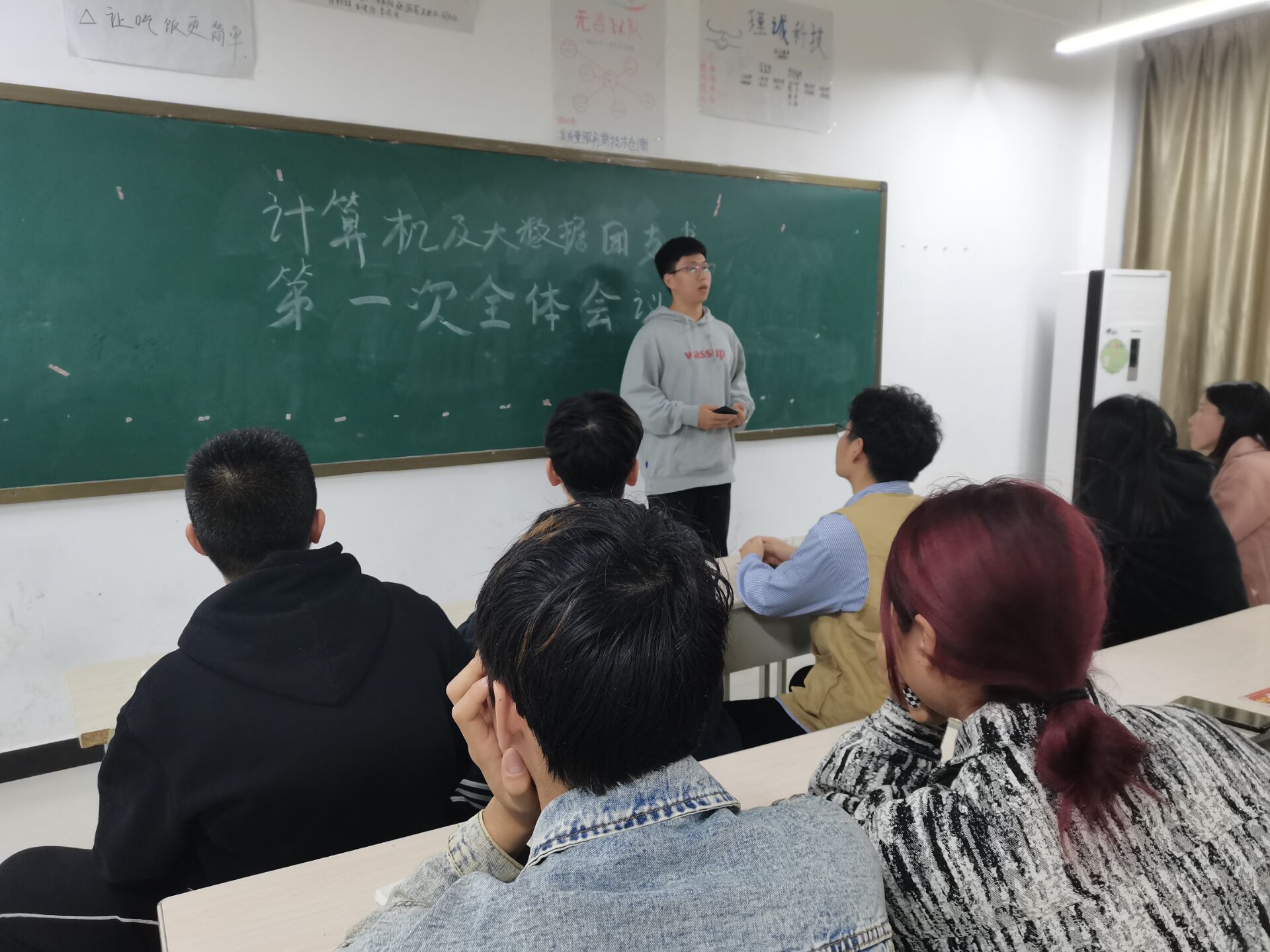 本次会议首先了解各班情况,要求各班团支书重新汇报各班在校人数,方便后期工作的照常进行。其次强调注意每次的团课上交时间,各班团支书开团课可以找辅导员借教室进行开展。并且可以让同学们反馈一下工作建议,学院会尽最大的努力帮助大家解决,为大家打造一个舒适的学习环境。