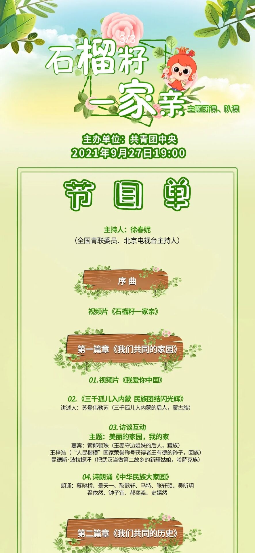 为贯彻落实中央民族工作会议精神,引导青少年不断加深对民族团结的认识,宣传弘扬中华民族的伟大精神,持续加强“强国有我,请党放心”的主题教育精神,2021年9月27日7时至8时30分,leyu乐鱼官方网站团总支组织学院学子一同观看“石榴籽一家亲”主题团课。