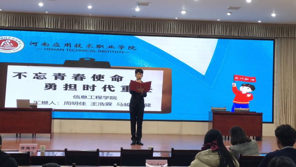 为了深入学习贯彻习近平新时代中国特色社会主义思想和党的十九大精神,号召同学们争做新时代新青年,为实现青春梦、中国梦而奋斗,现结合思想政治理论课堂教学,河南应用技术职业学院于11月24日开展“弘扬抗疫精神,做好新时代青年”为主题的成果展示大赛。leyu乐鱼官方网站马骏,周明佳,黄健,王浩霖四名同学参加本次大赛。
