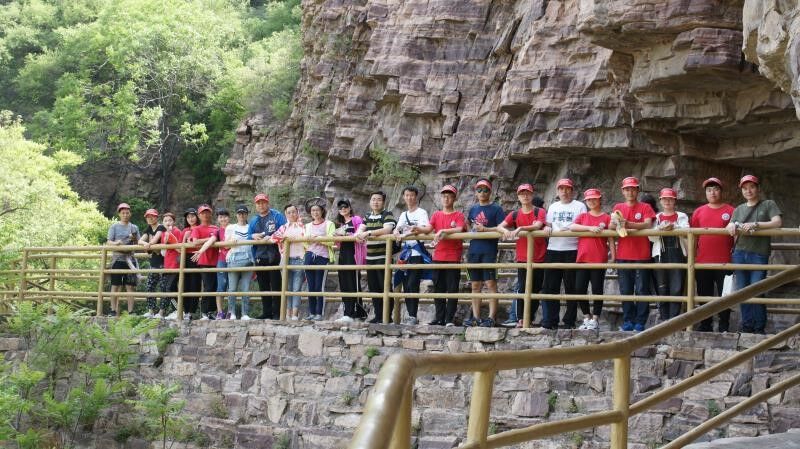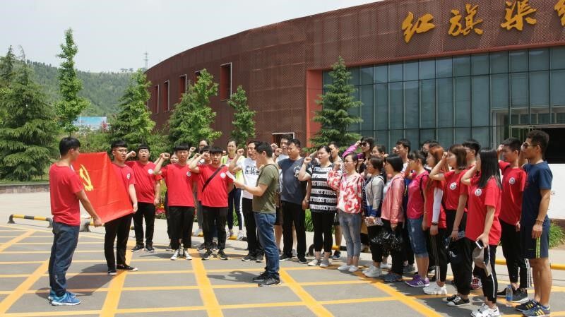 为弘扬自力更生、艰苦奋斗的红旗渠精神,加强爱国主义教育,充分发挥党员干部的先锋模范作用,2018年5月12日,leyu乐鱼官方网站党总支组织全体教师党员及优秀学生入党积极分子30人赴河南省林州市革命传统教育基地——红旗渠考察学习。5月12日清晨,我们登上了去林州的大巴。窗外晨雾缭绕,车内暧意融融。全体成员重温了考察学习注意事项,随队领导也再次明确了此行的目的和要求。车行四小时后,我们来到了此行的主要目的地——林州市红旗渠。