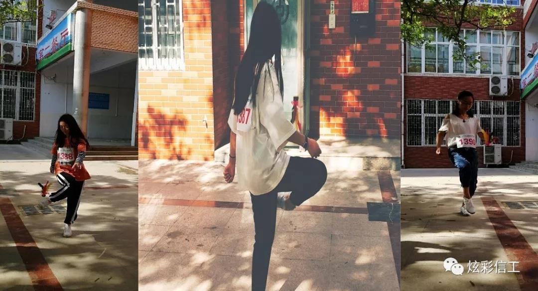 女子踢毽子项目在B楼前进行,春风拂面,带有一丝丝的凉意,运动员依旧充满着对比赛的信心和热情。比赛开始了,毽子在她们脚上如同被施了魔法一样一下接着一下。事实证明,毽子与脚的接触声是大于60秒的指针声。