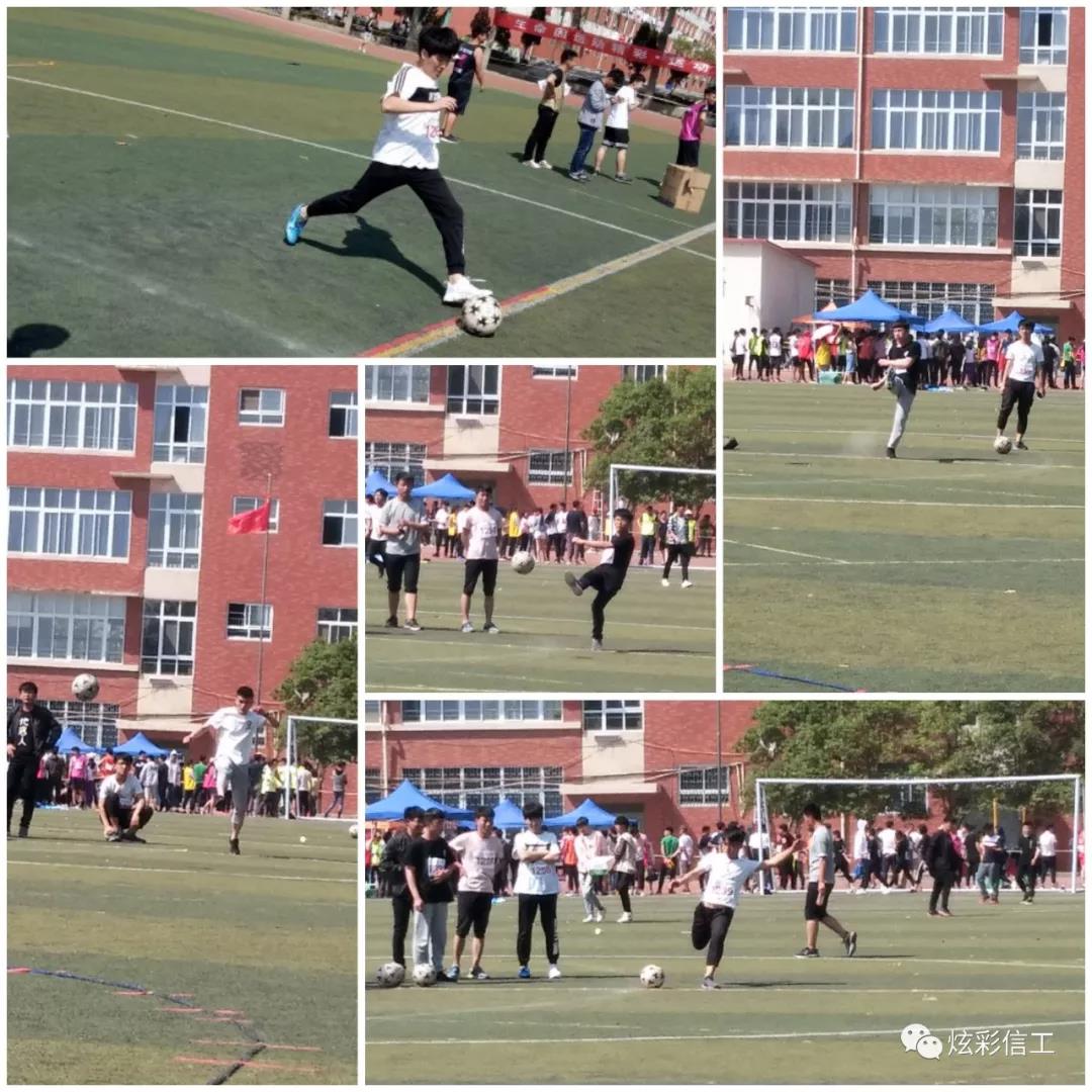 足球场上,每位参赛者都奋力一踢,踢出自己满意的成绩。