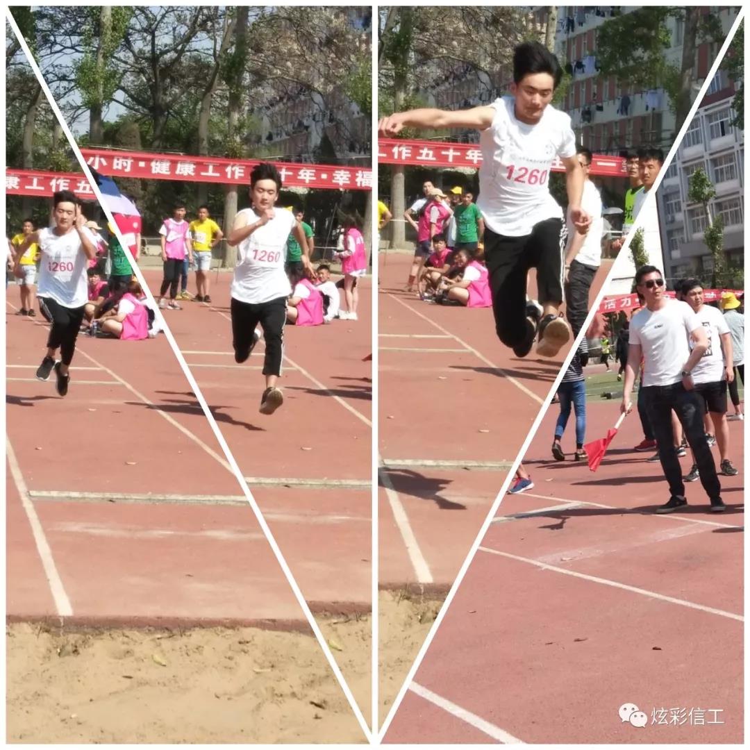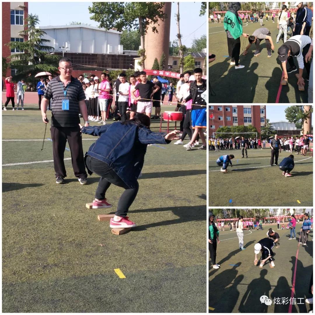 教工趣味比赛中,信息学院多位老师齐心协力,奋勇直追。在三块小木板上努力的保持住平衡到达了终点。