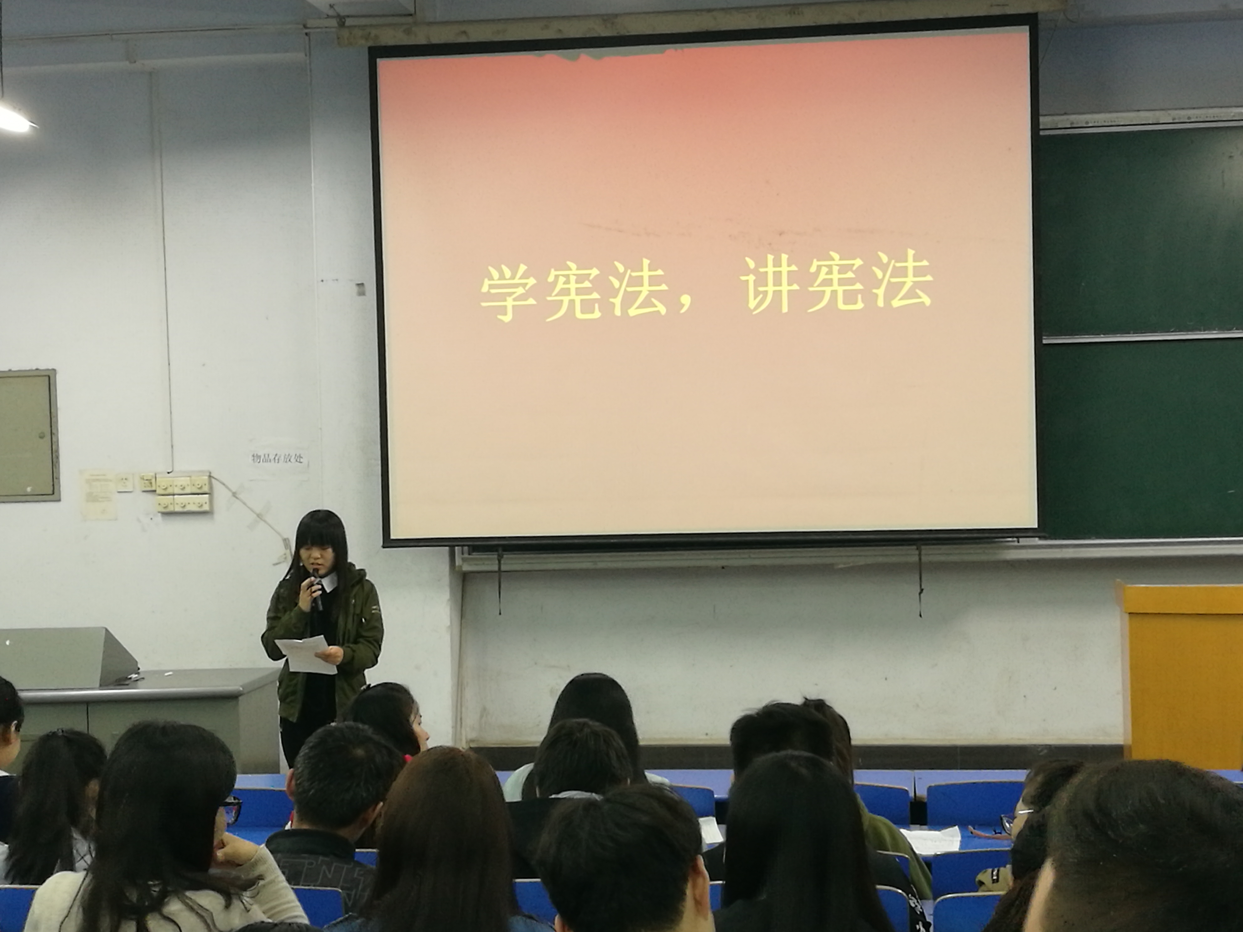 为认真贯彻落实教育部《青少年法治教育大纲》,推动青少年学生学习和宣传宪法,我院于2016年10月27日晚20:00在leyu乐鱼官网B101开展了以“学宪法讲宪法”为主题的演讲活动,在活动中各班入党积极分子热情参与,激情四射的讲述着自己的观点及见解。这次活动的成功开展,充分体现了同学们对我国宪法及法律知识的深入理解和对大学生活的热爱。12月4号是我国的全国法制宣传日,同时也是宪法宣传日。以宪法实施日作为"全国法制宣传日",就是要在全社会进一步强化宪法意识,树立宪法观念。