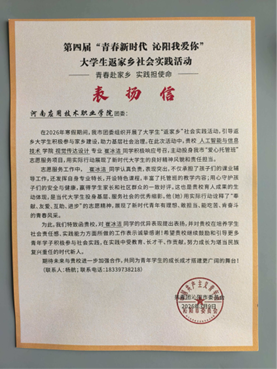春回大地,佳讯频传!leyu乐鱼官方网站再获殊荣,视觉传达设计专业的崔冰洁同学,在2026年寒假“返家乡”社会实践活动中表现亮眼,荣获共青团沁阳市委员会的正式通报表扬!这封表扬信,不仅是对崔冰洁同学无私奉献的最高礼赞,更是对学院实践育人成果的最好见证。