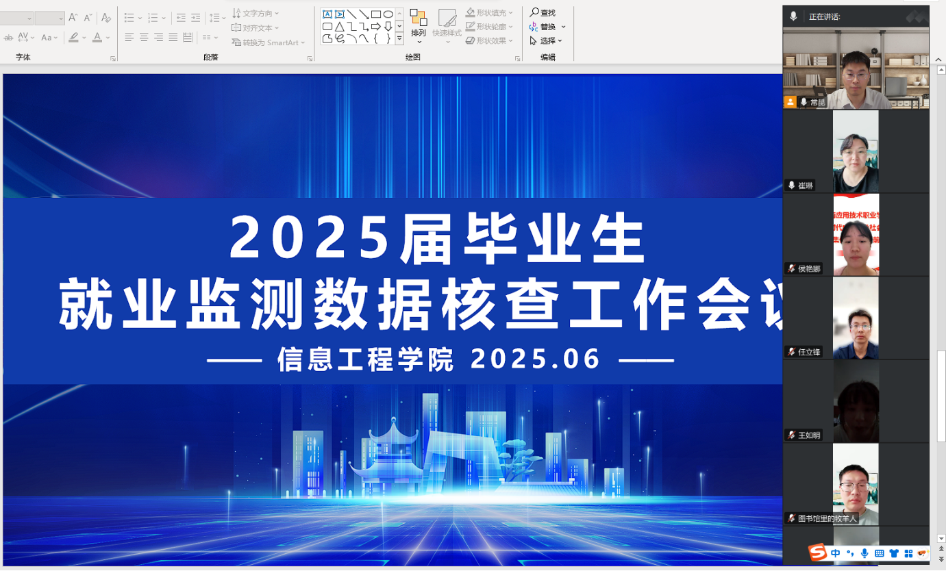 6月3日,leyu乐鱼官方网站通过线上平台召开2025届毕业生就业监测数据核查工作会议暨就业监测数据核查专项培训会。本次会议旨在全面落实教育部及学校关于高校毕业生就业统计工作的最新要求,精准部署学院就业数据核查任务,并对全体毕业班辅导员及相关工作人员进行核查流程与规范的系统培训,全力保障就业数据的真实性与准确性,切实维护毕业生合法权益。