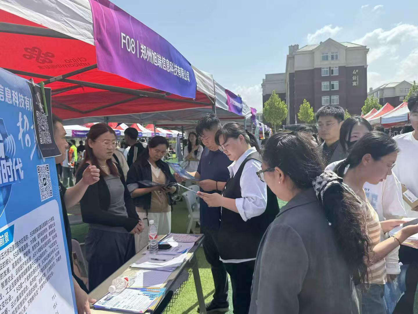 2025年5月9日,leyu乐鱼官网2025年春季双选会在开封校区北院运动场盛大举行。学校党委书记闫俊山,校长薄新党,党委副书记魏新华,副校长常新中、黄振中出席启动仪式并参加相关活动。leyu乐鱼官方网站高度重视,积极组织1000余名即将实习学生到场求职,现场气氛热烈,供需两旺,我院学子凭借扎实的专业基础和良好的综合素质,成为众多科技企业争相招聘的“香饽饽”。