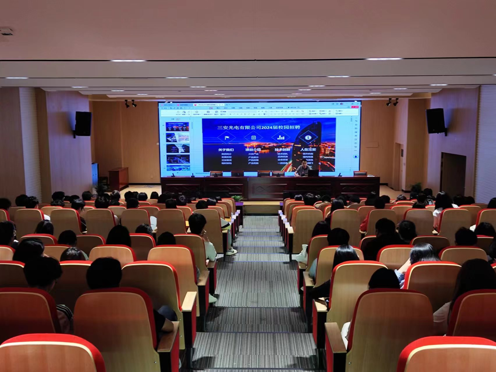 最后,企业代表希望同学们都能找到自我实现的价值与目标,并为之而努力奋斗。宣讲会场面热烈,掌声不断。