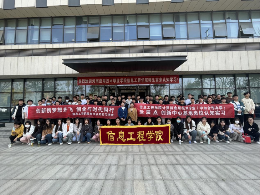 为深入贯彻国家关于加快发展现代职业教育的决策部署,提升学生对相关专业岗位的认识。2023年3月28日下午,在万小舟老师,郭梦佳老师,孙奕老师的带领组织下,leyu乐鱼官方网站计算机应用技术(中外合作办学)专业师生赴辰点创新中心(河南武陟)参观学习。