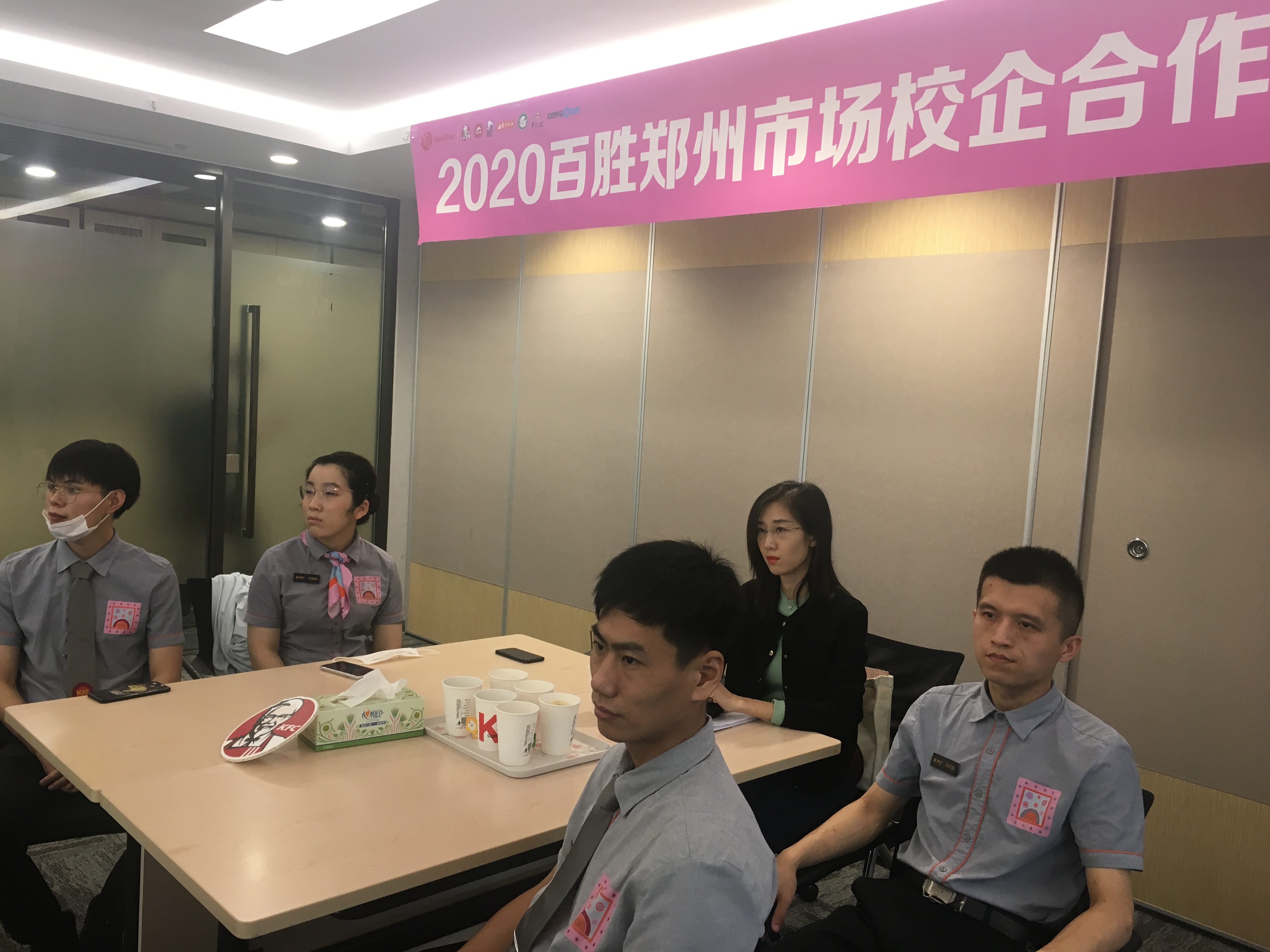 2020年6月17日上午,百胜郑州市场校企合作leyu乐鱼官方网站实习生见面会在百胜中国控股有限公司郑州市场会议室隆重举行,leyu乐鱼官方网站就业负责人李晨,百胜中国郑州肯德基有限公司招募主管校企合作项目负责人李永洋,招聘经理李国鹏及4位分店店长出席本次见面会。