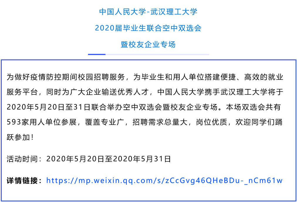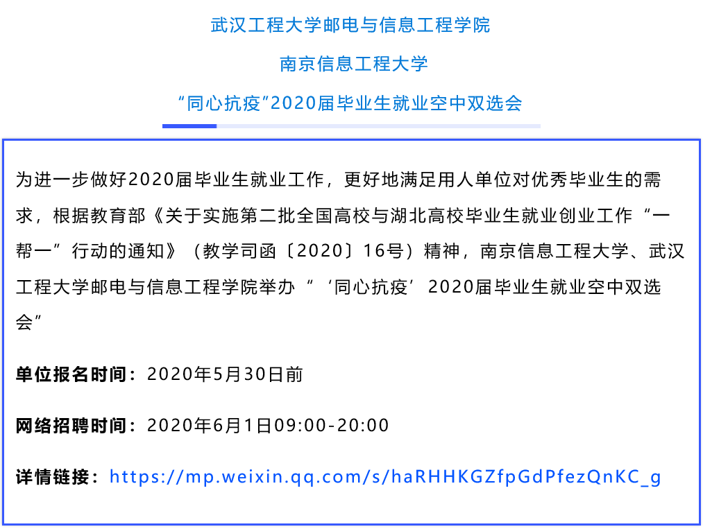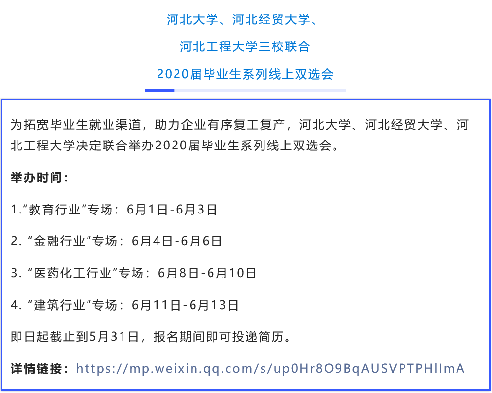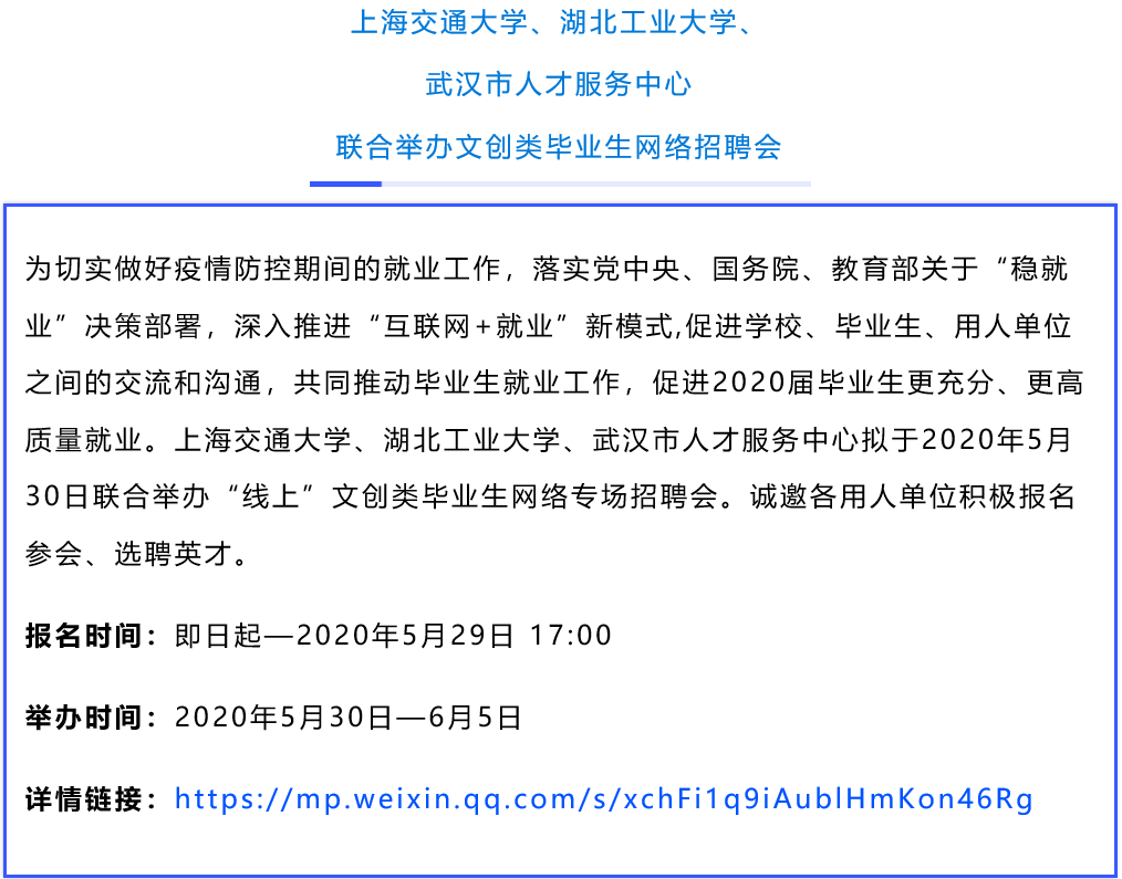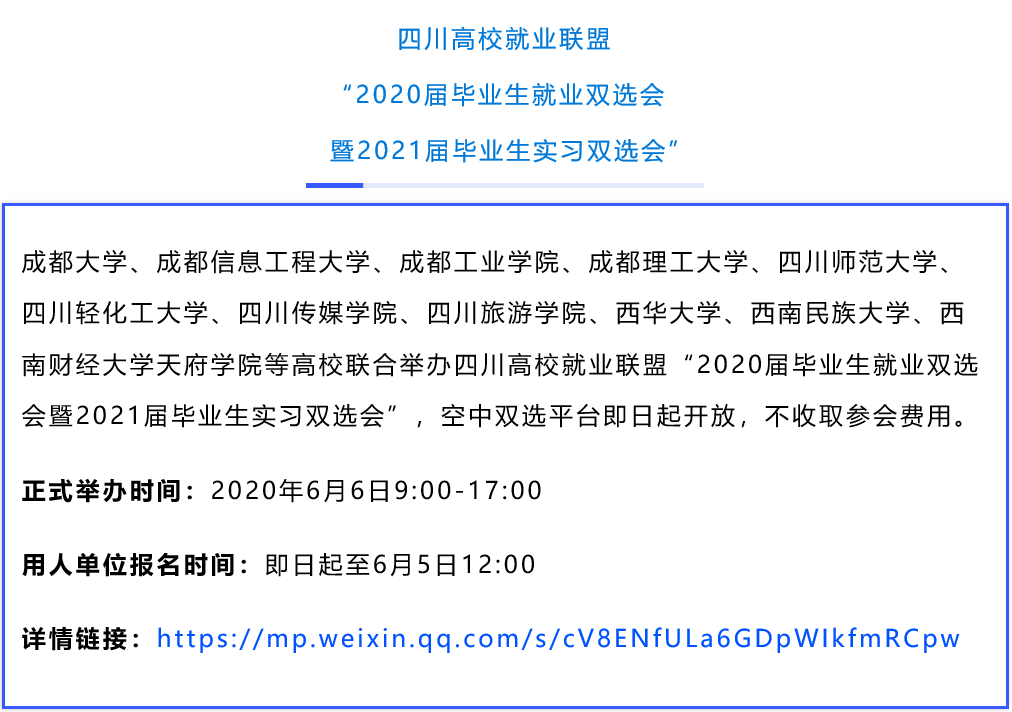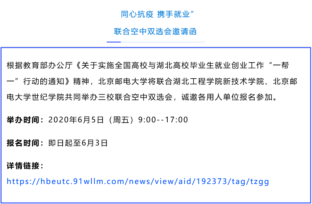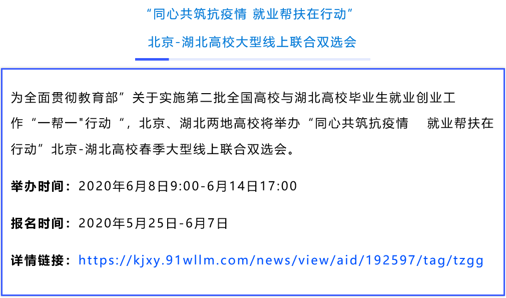 自教育部启动实施全国高校与湖北高校毕业生就业创业工作“一帮一”行动以来,相关高校积极响应。“一帮一”高校共享就业岗位信息、共同开拓就业渠道,联合举办多场空中双选会。众多联盟高校也联合起来,在用人单位和大学生之间搭建便捷、高效的供需 “云”平台。空中双选会为毕业生和企业提供人岗匹配度更高的选择。近期,17场高校空中双选会正在进行中,欢迎用人单位和高校毕业生报名参与!
