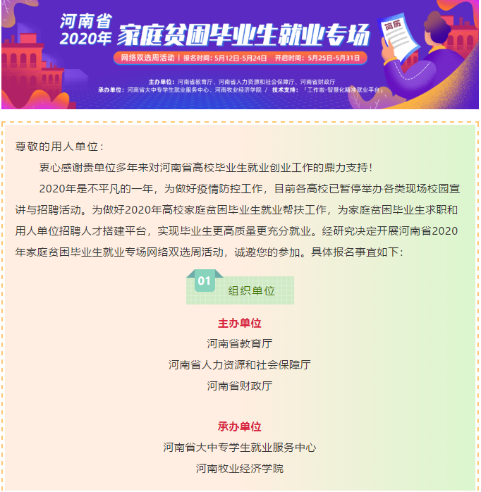 上一条:【招聘】最新!事业编!河南多地学校等事业单位公开招聘 下一条:【招聘】5月20-26日河南省创新创业载体及在孵企业春季联合网络招聘会邀请函