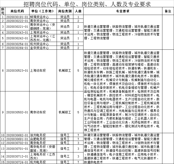 中国铁路上海局集团有限公司根据企业发展需要,拟招聘应届全日制普通高等职业院校高职(大专)毕业生,现将具体事项公告如下: